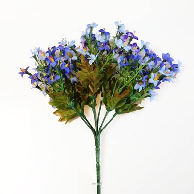 Bouquet de Mini fleurs artificielles avec feuillage H 26 cm tres dense  Bleu royal